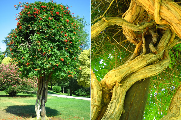 公園の外灯に巻きついて