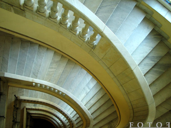 大理石の螺旋階段 ステンドグラスからのやわらかい光が暖かくて 心和む場所 Círculo de Bellas Aeres, Madrid